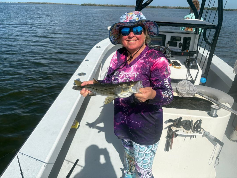 Amy had a hilarious day on the water with the CFOA fishing club. They were reeling in the big ones left and right, but poor Amy struggled to catch anything bigger than a sneeze. Despite their best efforts, all they managed to reel in was a wimpy little Snook that barely made a dent on the scale. Better luck next time, Amy!